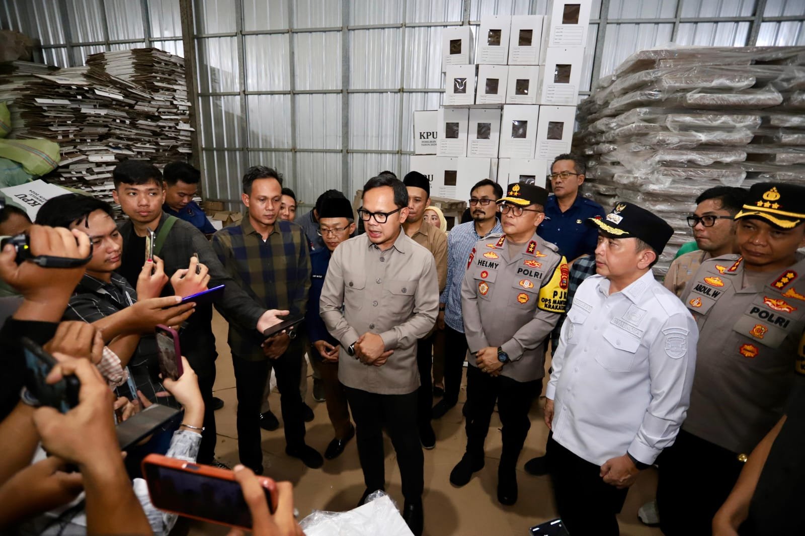 mandalanusantaranews.com Bandar Lampung – Wakil Menteri Dalam Negeri (Wamendagri) Bima Arya Sugiarto meninjau kesiapan logistik Pilkada Serentak 2024 di Kota Bandar Lampung. Peninjauan itu dilakukan Bima bersama Penjabat Sementara (Pjs.) Wali Kota Bandar Lampung Budhi Darmawan, Komisi Pemilihan Umum (KPU) Kota Bandar Lampung, Kapolda Lampung Irjen Pol. Helmy Santika, serta pejabat terkait.