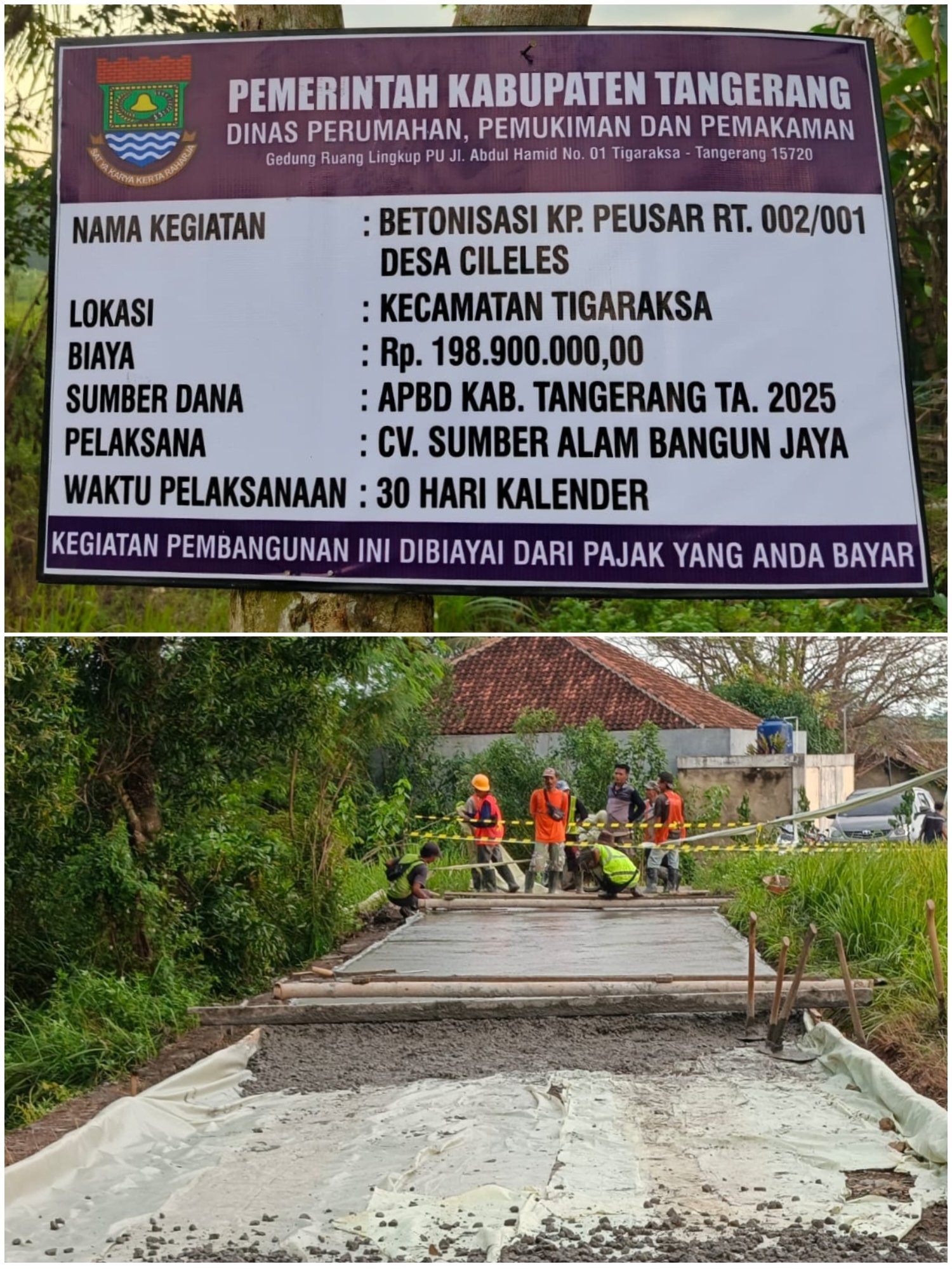 Mandala Nusantara News Tigaraksa – Warga Kampung Peusar RT 002/01, Desa Cileles, Kecamatan Tigaraksa menyambut gembira pembangunan betonisasi jalan yang kini tengah direalisasikan oleh anggota Dewan fraksi partai Demokrat Yaya Amsori melalui Dinas Perkim Kabupaten Tangerang. Proyek infrastruktur tersebut dilaksanakan oleh CV SUMBER ALAM BANGUN JAYA dengan nilai anggaran sebesar Rp.198.900.000, yang bersumber dari Anggaran Pendapatan dan Belanja Daerah (APBD) Tahun Anggaran 2025.